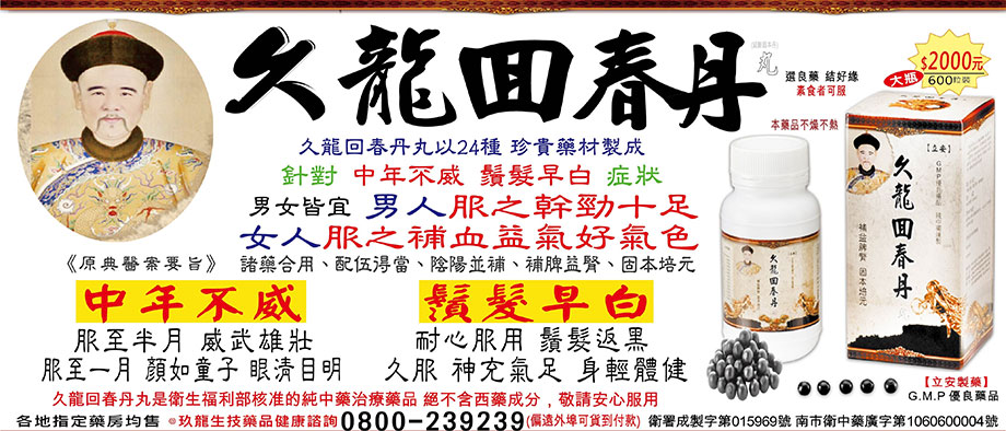 0800-239239全省各地廣告指定藥局均有出售,衛署成製字第015969號、南市衛中藥廣字第1050700008號。